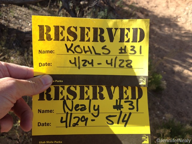 After Bryce Canyon, we had reservations at Kodachrome Basin State Park. Due to a little bit of bad timing, we were just going to miss being there at the same time as our friends Hans & Lisa of Metamorphosis Road. In fact, we actually had reserved the exact same spot that they did, just for different weeks. We visited them during their say at the park, and got a little laugh over the reservation cards which showed just how closely we missed each other.