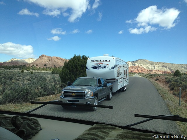 We bumped up our arrival by one day to get away from the cold weather at Bryce, so just as we were arriving, we passed Hans & Lisa on their way out. If you look closely you can even see their cat Rosie in the back seat of their truck!