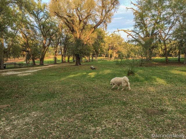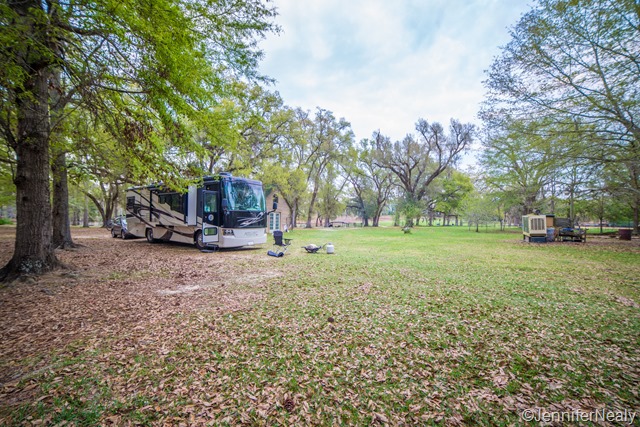 After spending most of the winter hanging around the Florida panhandle, Deas and I were both anxious to get the wheels moving again. In mid March we said good-byes to our friends and families, rolled out of Grayton Beach and headed east. Our very first stop was a Harvest Host farm in Monticello, FL, just a few short hours down the road. We stayed at Golden Acres Ranch, and it was yet another great Harvest Host experience. This is a working farm with lots of goats, sheep, and chickens, and several Great Pyrenese dogs who roam the property freely. These are working dogs, and they made sure to give us a few warning barks, but they mostly kept their distance from us and our dogs. It was a lovely, pleasant stay and with very friendly owners, and we bought some farm fresh eggs and mayhaw jelly from them before departing the next morning.