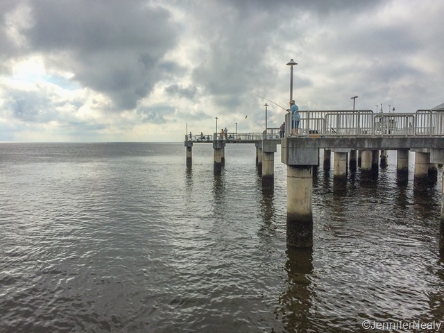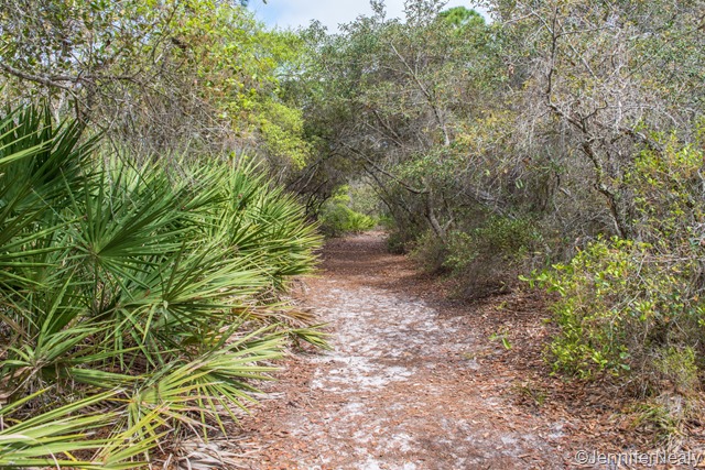 Cedar Key is primarily a fishing town, but we also managed to find a few nice, easy hikes to explore in the nearby Lower Suwanee Wildlife Refuge. First we did the Dennis Creek Trail which is an easy 1 mile loop that takes you through some of the marshland where the Suwannee River meets the Gulf of Mexico. The tide was going out as we did this hike, and there were hundreds of little crabs in the receding water, as you can see in the first picture below. Right next to the trail is the Shell Mound Archaeological Site, which is where Native American discarded thousands of oyster and clam shells. That trail ends at a dock that goes out over the shallow gulf waters.