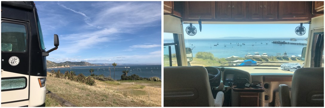 Rincon has a 5-day limit during the time of year we were there, so after 5 days we had to leave. But our next destination had some great views too! We went to the Port San Luis Harbor in Avila Beach. Sites here are all also first-come-first-served, and the majority of them are right on the water, but also right on a busy road. We opted for the overflow area which is up on a hill and much quieter. Most sites are dry camping, but there are a handful of full hook-up sites available also.
