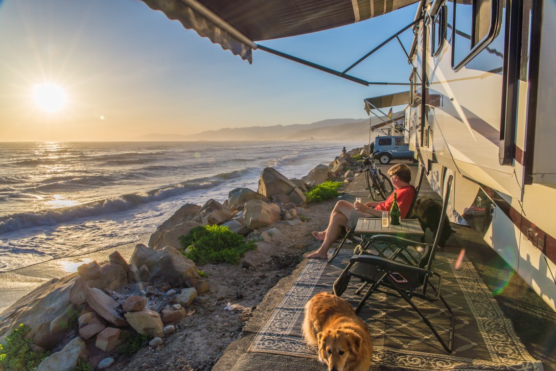But it also has a few negatives – the sites are really, really tight, and it’s directly under the flight path from LAX so it’s pretty noisy. And unfortunately for us, we were there over Easter weekend, and the campground was filled with large families who hung out in the campground all weekend. The sites are so tight that when we tried to walk the dogs, we were actually walking right through these large family gatherings.
